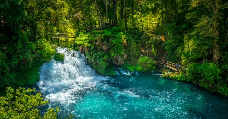 Neste passeio você vai conhecer alguns dos lugares mais icônicos da região. Começaremos pela incrível passarela Quelhue, de onde você terá uma vista panorâmica dos três vulcões que cercam a área. Seguiremos até o Mirador Turbio, de onde será possível apreciar paisagens impressionantes e ainda intocadas do Chile.