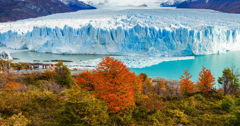 Nas passarelas e mirantes, o Perito Moreno surge em toda a sua grandiosidade: um gigante de gelo com mais de 60 metros de altura e tons intensos de azul. Caminhar pelos diferentes níveis oferece visões únicas e, com sorte, será possível ouvir o estrondo do gelo se rompendo e ver blocos caindo nas águas do Lago Argentino — um espetáculo inesquecível da natureza.
